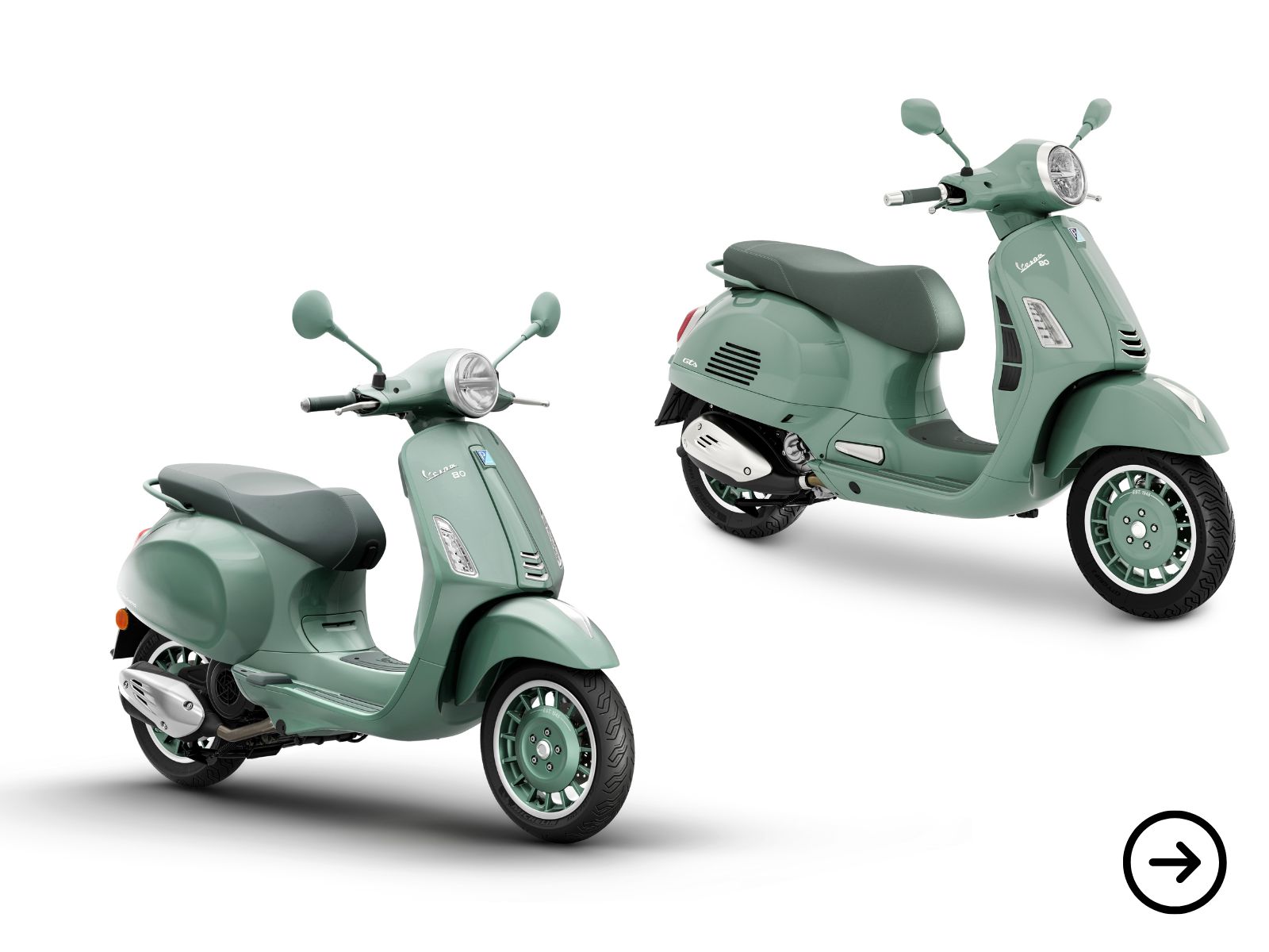 Beide jubileummodellen zijn uitgevoerd in de unieke kleur Verde 80th: een zachte pastelgroene tint met een uitgesproken vintage karakter. Opvallend detail is dat deze kleur ook doorloopt op onderdelen die normaal chroom of zwart zijn. Dit zorgt voor een stijlvol en harmonieus “dipped” effect.